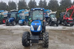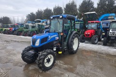Ciągnik sadowniczy marki New Holland model T4.75N maszyna sprowadzona w komplecie obciążniki zaczepy cena plus podatek za dopłatą przedni TUZ